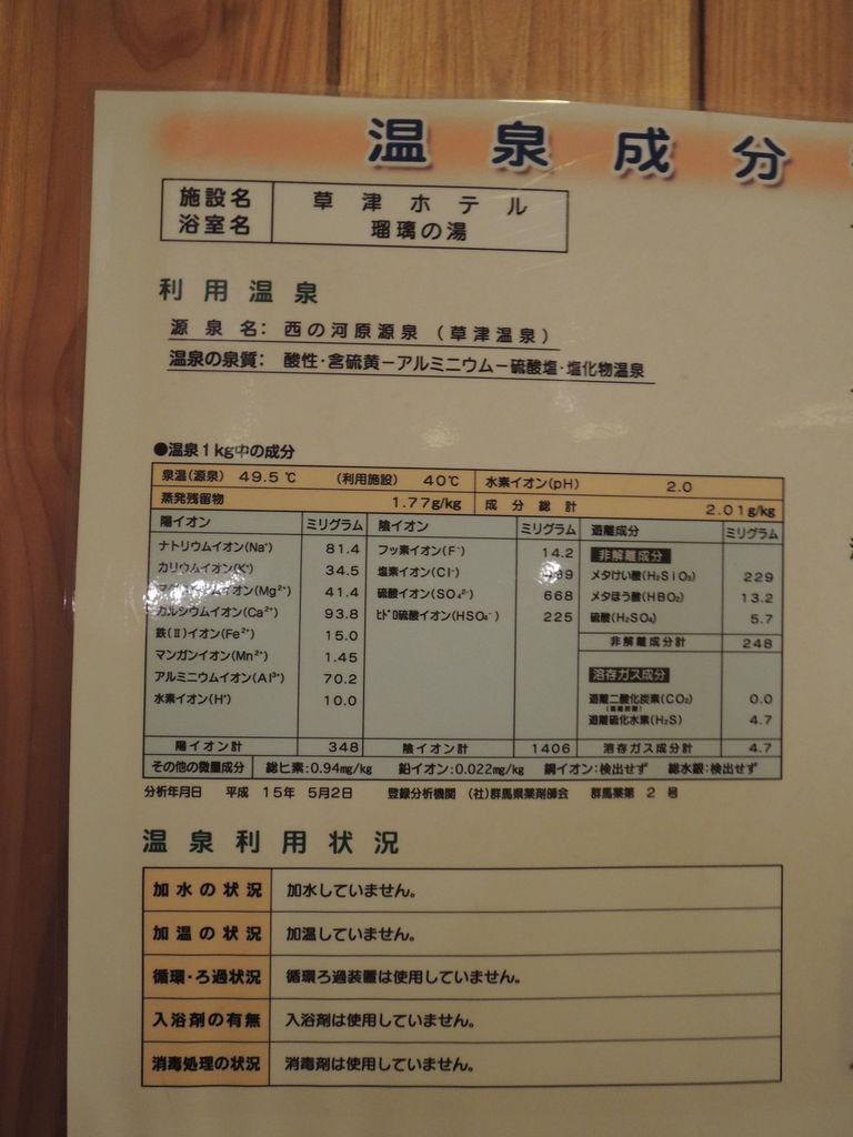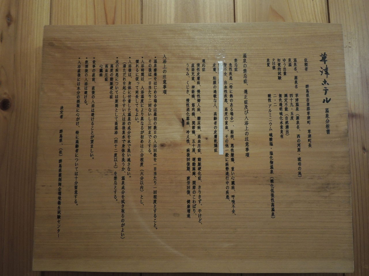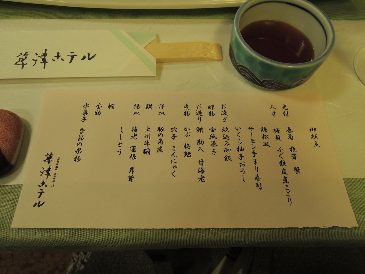 草津温泉ホテルのホームページはしっかりしていて、外観、館内、部屋、お風呂、食事(一品ずつ)、サービス(お付き菓子まで)、施設などの写真が沢山綺麗に載っているのでホームページを見るのが一番です