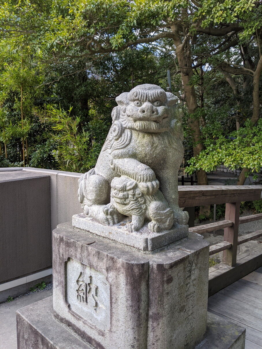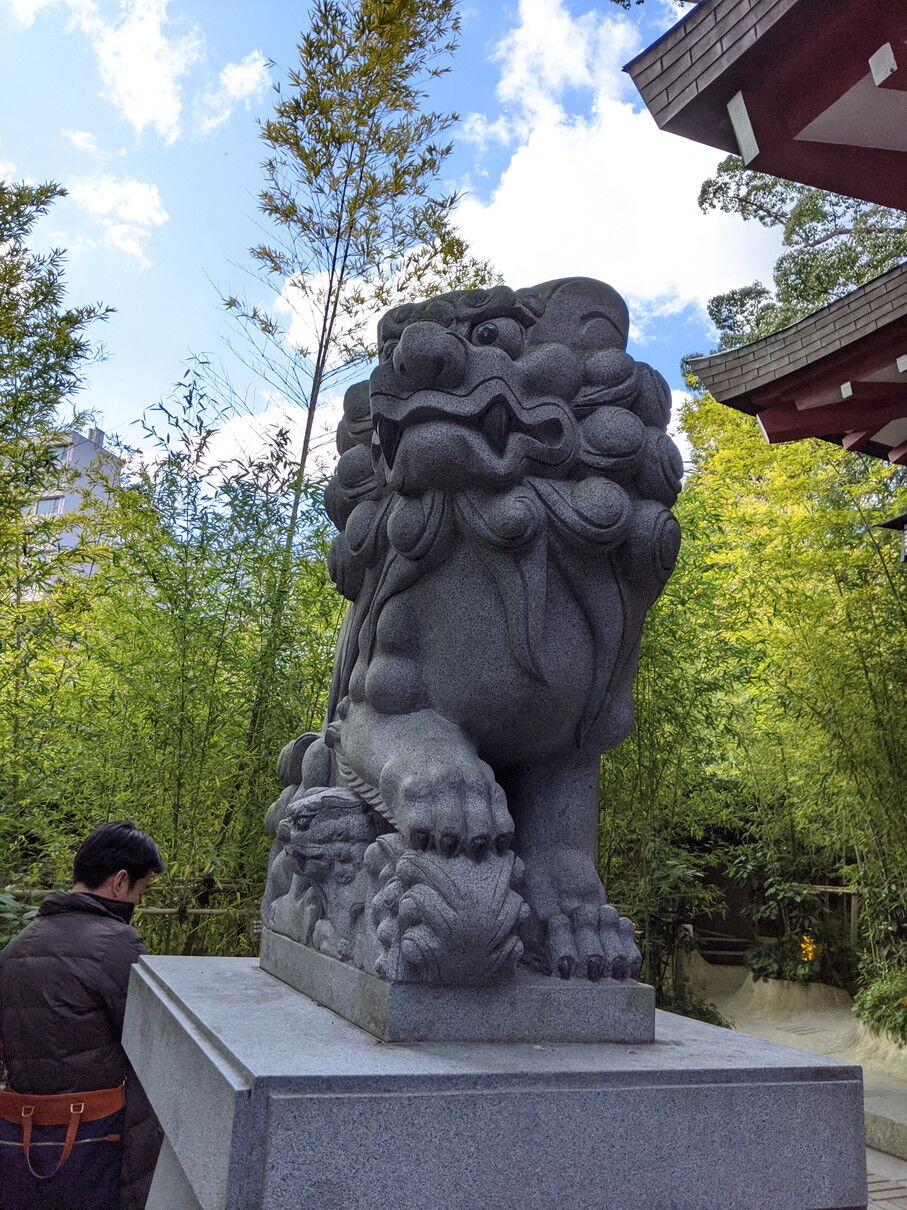 狛犬さん2。この狛犬さんの近くで猿回しが行われていました。父は大楠や神社より猿回しの方が楽しそうでした